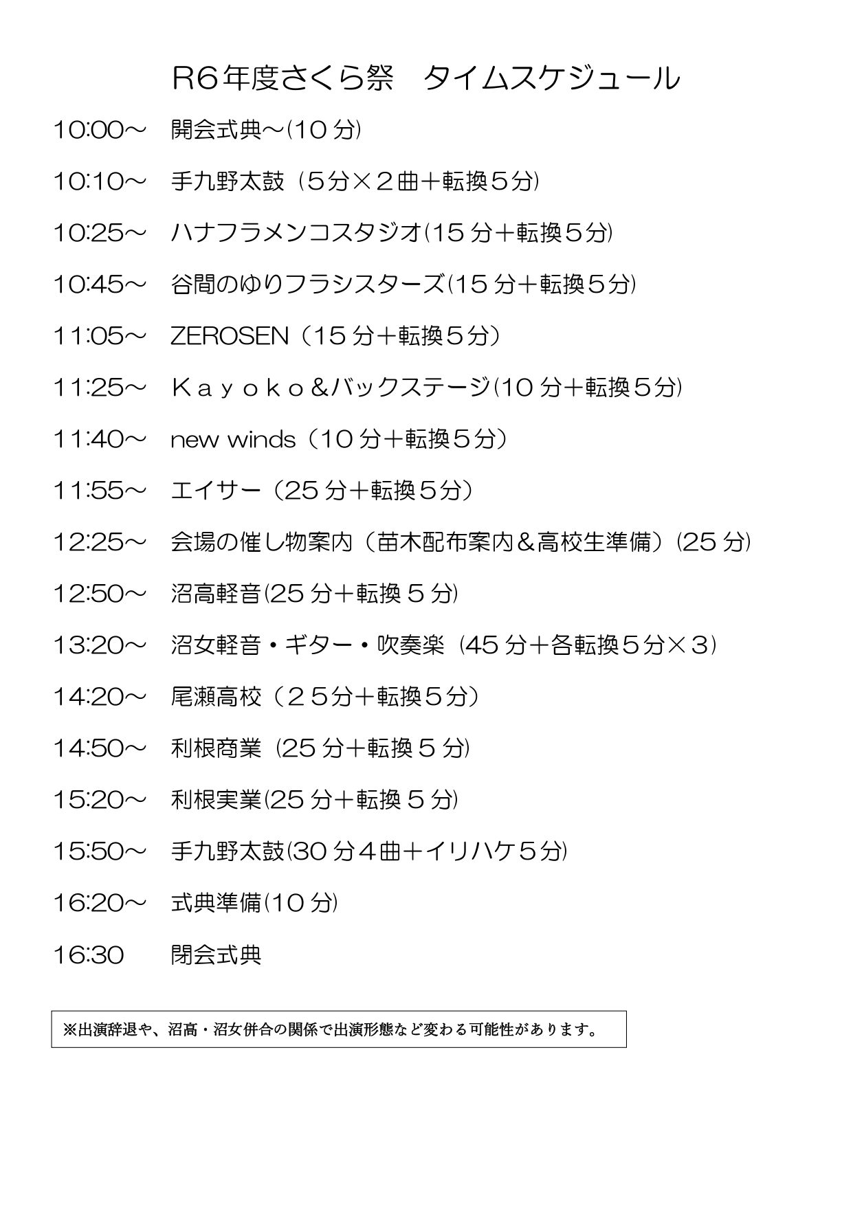 イベント内容:桜の苗木植樹、手九野太鼓、エイサー、ふわふわドーム、高校生バンド演奏等